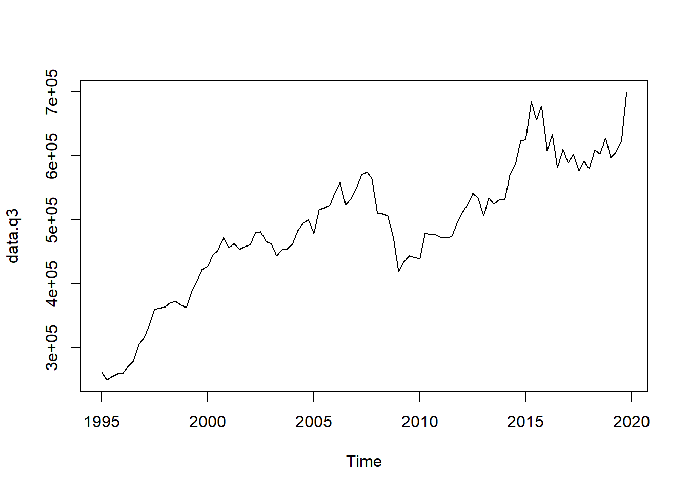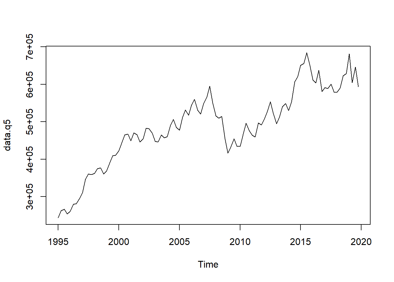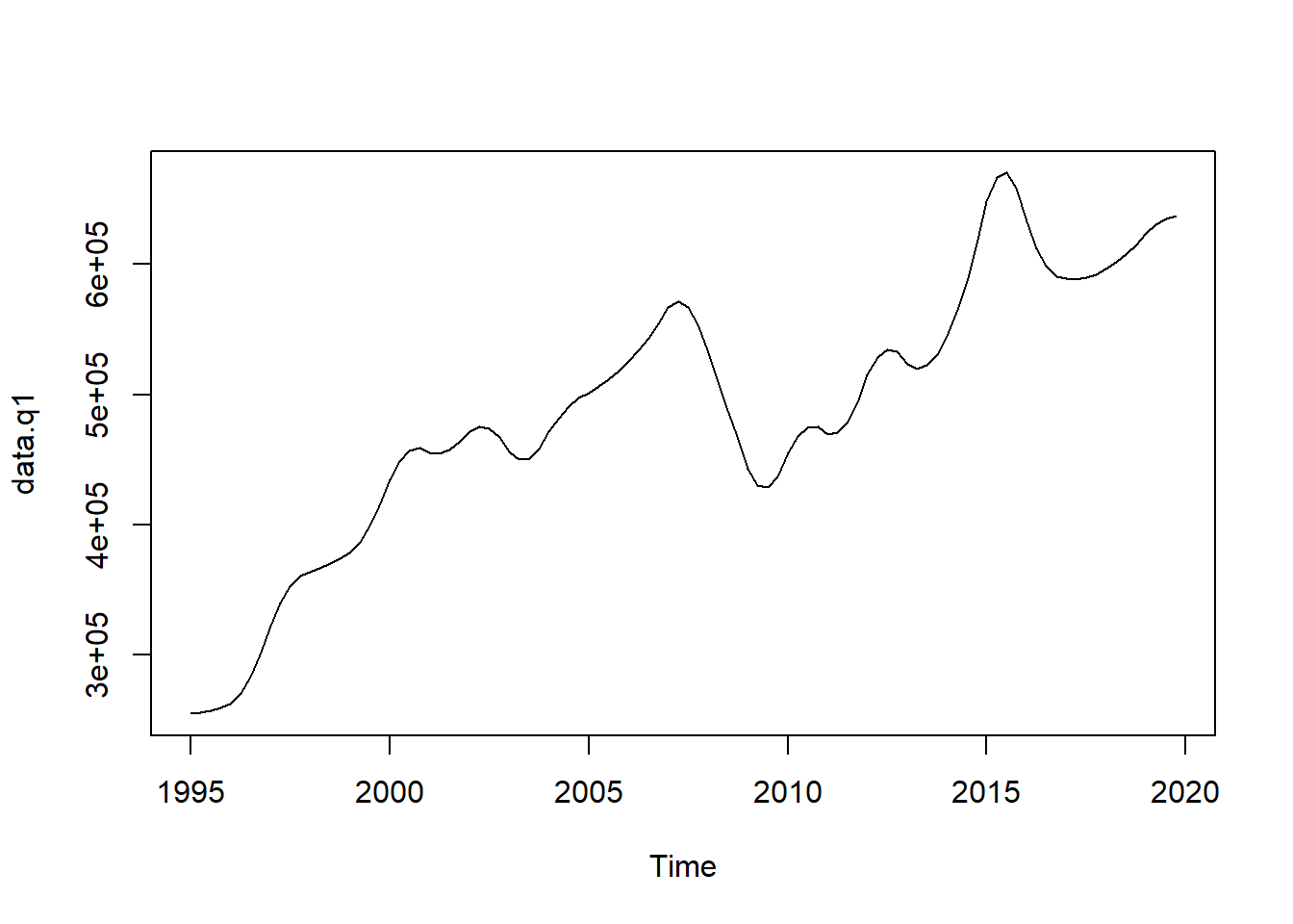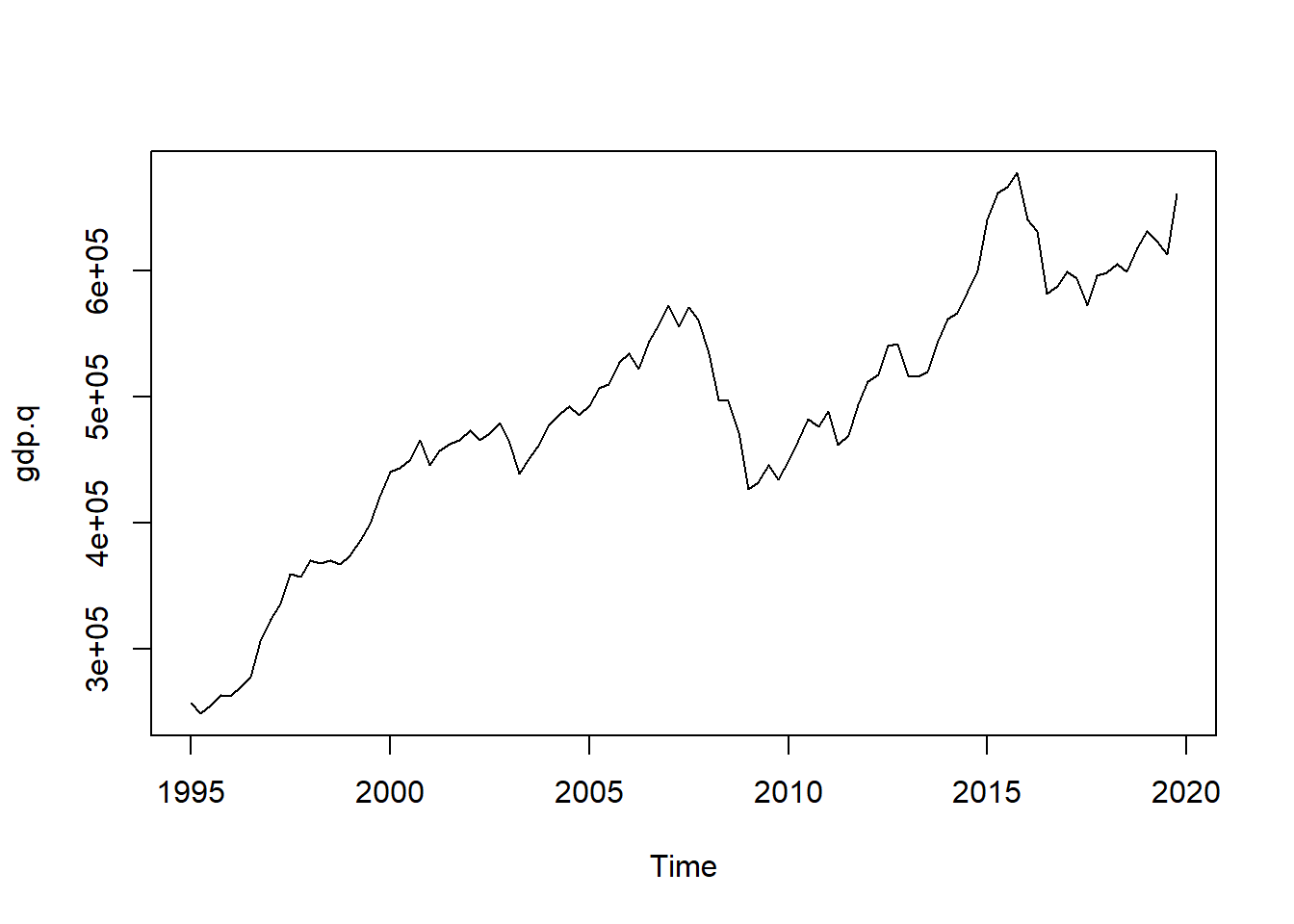 gdp.q <- ts(gdp.q$values, start = c(1995,1), end = c(2019, 4), frequency = 4)