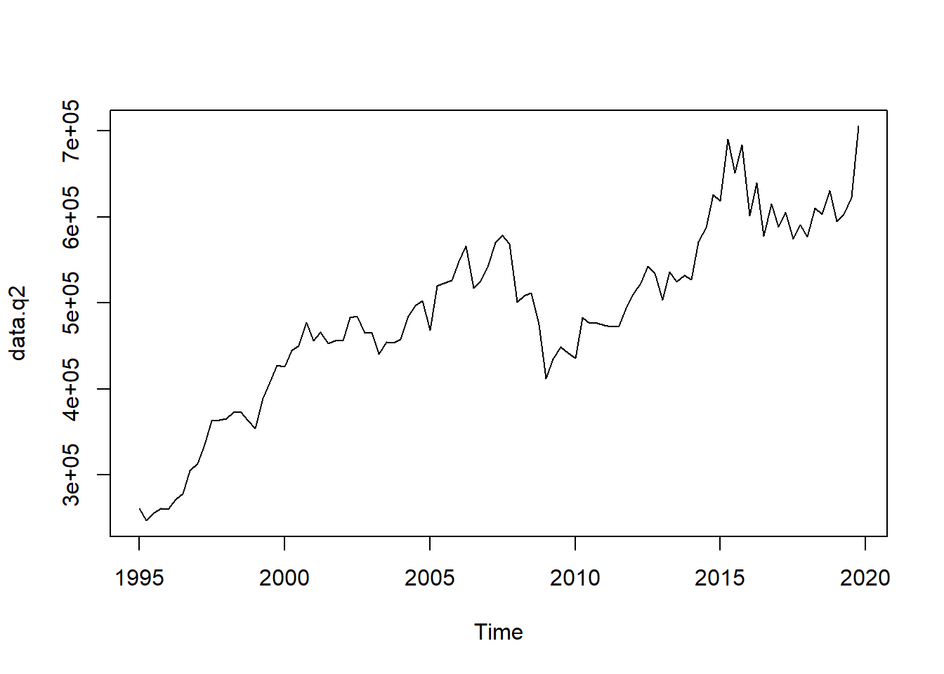 imports.q <- ts(imports.q$values, start = c(1995,1), end = c(2019, 4), frequency = 4)